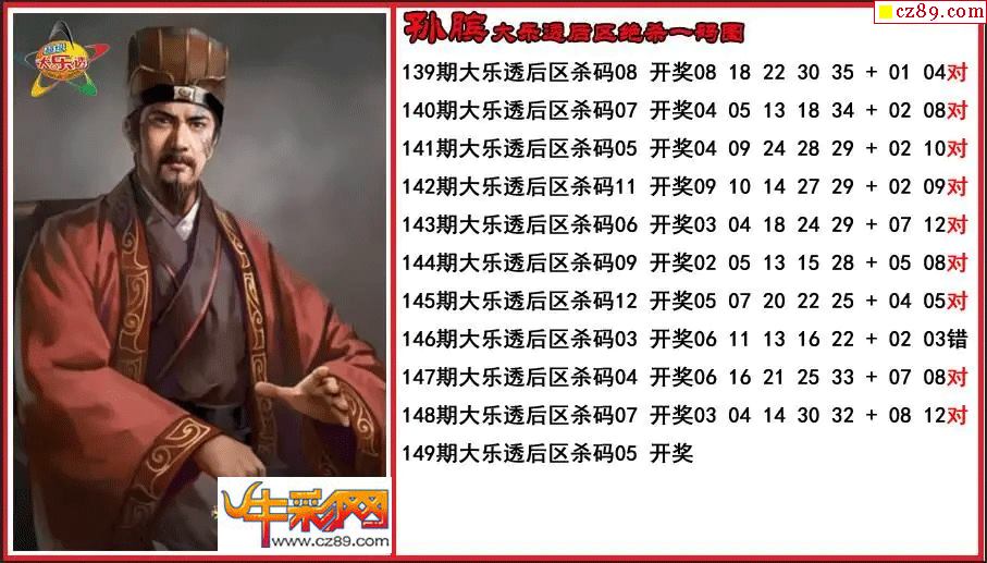 大乐透149期孙膑后区绝杀一码图